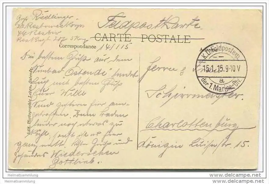 Ostende - Sortie de la Malle - Verlag Lebon Ostende - Feldpost (E8867) gel. 1915