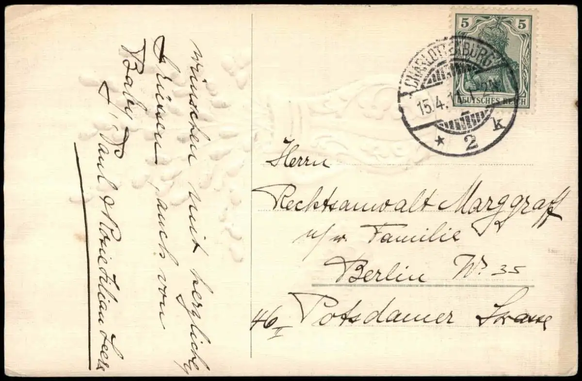 Ostern Easter Weidenkätzchen in Blau- u. weißer Vase 1911 Prägekarte