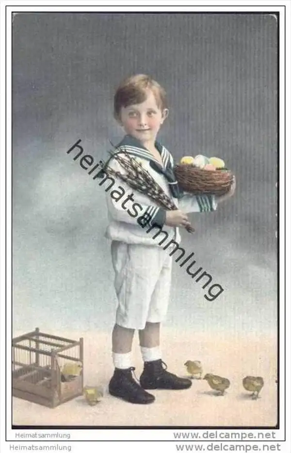 Ostern - Junge mit Ostereiern und Küken (G17349)