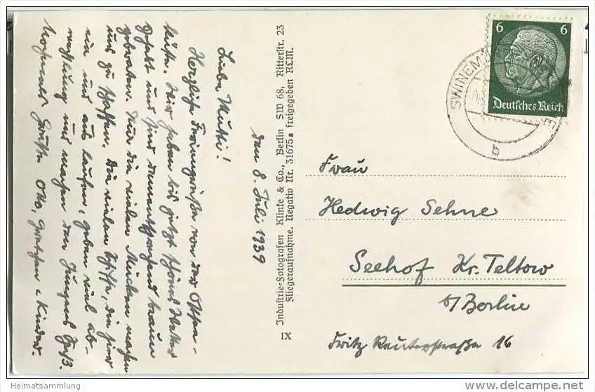 Osternothafen - Leuchtturm und Mole - Fliegeraufnahme - Verlag Klinke & Co Berlin - Rand beschnitten (G34870) gel. 1939