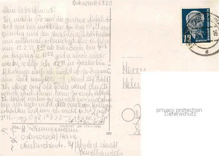 Osterwieck Partie am Markt Kirchtuerme Osterwieck postalisch gelaufen 1953 Erhaltung siehe scans [FriedD77] Frierer