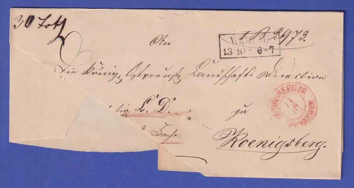 Vorderseitig roter Zweikreisstempel KÖNIGSBERG PR.