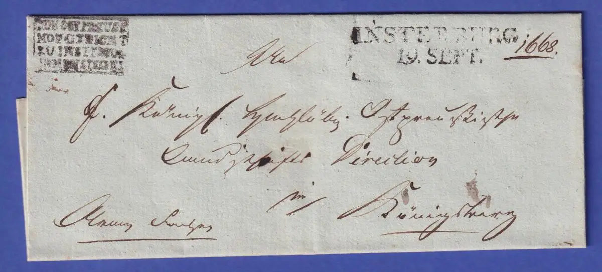 Ostpreußen Brief mit Zweizeiler INSTERBURG nach 1817 (1818 ?)