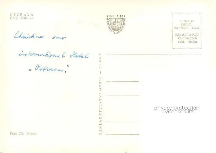 Ostrava Hotel Ostrava Ostrava postalisch nicht gelaufen nach 1965 Erhaltung siehe scans [WerneD78] WernPID7
