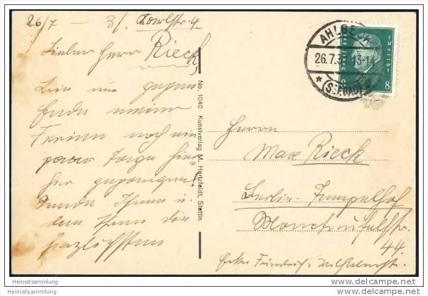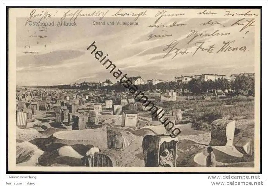 Ostseebad Ahlbeck - Strand mit Villenpartie - Verlag M. Hertzfeldt Stettin (E4038) gel. 1931