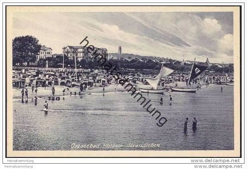 Ostseebad Ahlbeck - Strandleben - Verlag M. Hertzfeldt Stettin 30er Jahre (E4036)