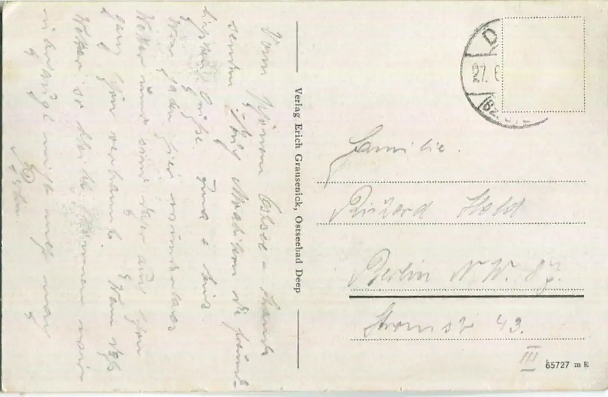 Ostseebad Deep - Strand - Verlag Erich Grausenick Deep - Briefmarke entfernt (G16740) gel.
