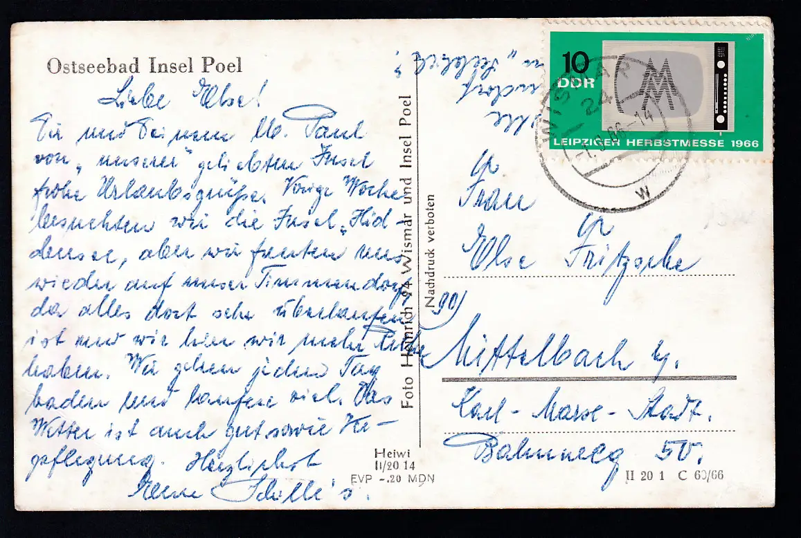 zwei sehr schöne Bahnpostbelege, einmal HUSUM-GARDING von 1916 - ohne Zugnummer aufgrund der Furcht vor feindlicher Spionage - und ERFURT-EISENACH von 1965. Vielen Dank, bin mit der Lieferung sehr zufrieden.