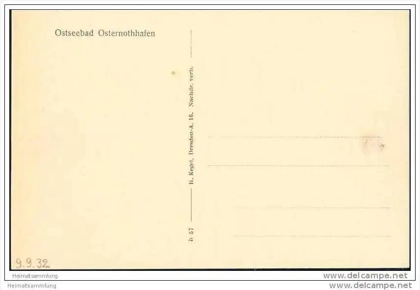 Ostseebad Osternothafen - Verlag H. Kegel Dresden 30er Jahre - rückseitig Klebepunkte (E2786)