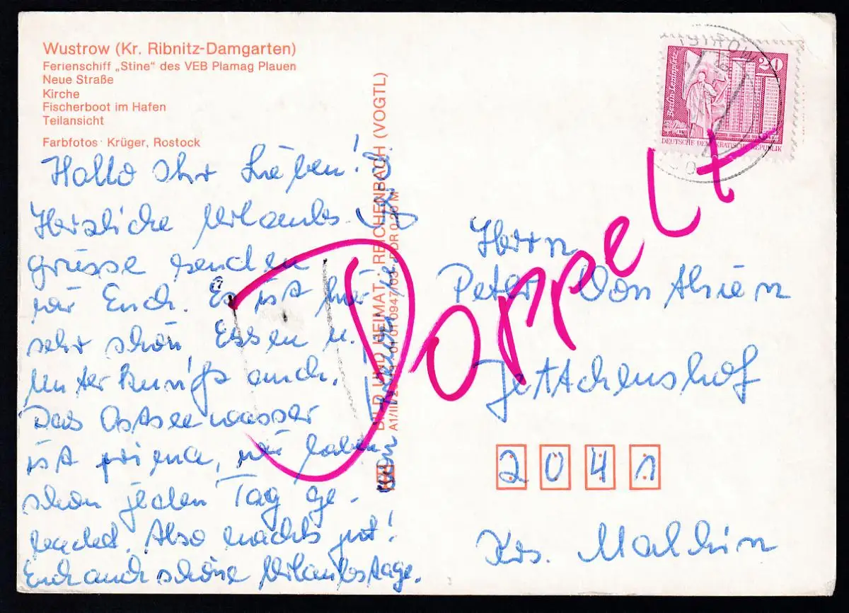 zwei sehr schöne Bahnpostbelege, einmal HUSUM-GARDING von 1916 - ohne Zugnummer aufgrund der Furcht vor feindlicher Spionage - und ERFURT-EISENACH von 1965. Vielen Dank, bin mit der Lieferung sehr zufrieden.