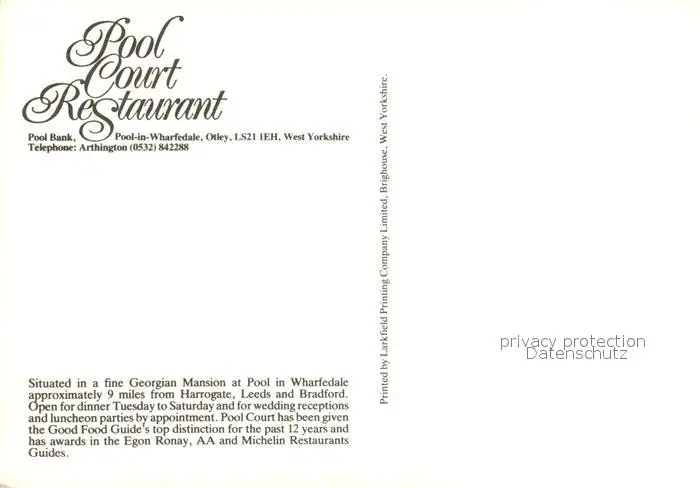 Otley Pool Court Restaurant postalisch nicht gelaufen nach 1965 Erhaltung siehe scans [LiesaD40] LiesID40