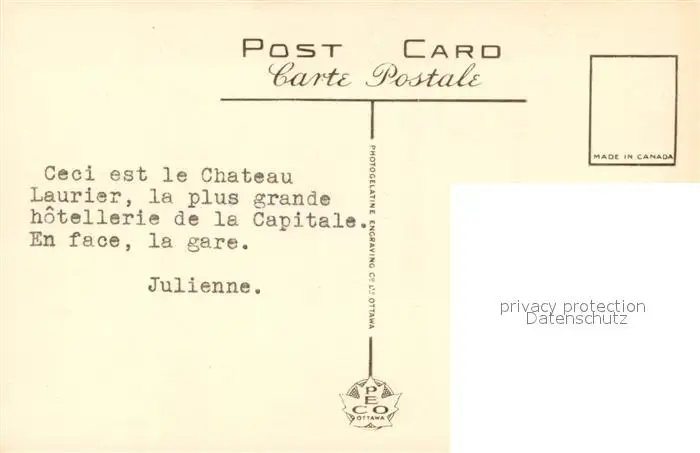 Ottawa_Canada Chateau Laurier Ottawa Canada postalisch nicht gelaufen 1921-1965 Erhaltung siehe scans [WerneD78] WernPID7