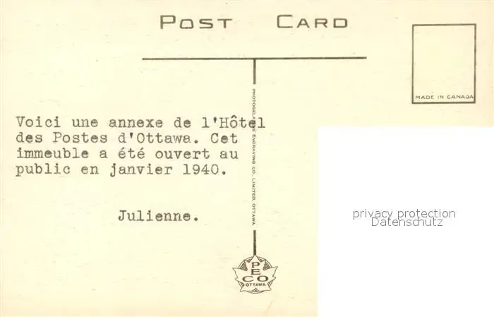Ottawa_Canada Post Office opposite the War Memorial Ottawa Canada postalisch nicht gelaufen 1940 Erhaltung siehe scans [WerneD78] WernPID7