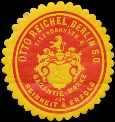 Garantiemarke für Reinheit & Erfolg. Eisenbahnstraße 4, Größe/Zustand: 4x4 , beschädigt, Original alte Reklamemarke die seinerzeit für die Werbung benutzt wurde