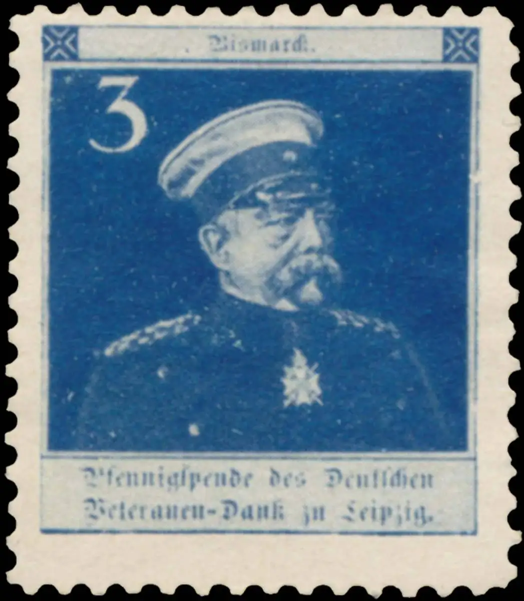 Pfennigspende des Deutschen Veteranen-Dank zu Leipzig, blau, Größe/Zustand: 3x3 , guter Zustand, Original alte Reklamemarke die seinerzeit für die Werbung benutzt wurde