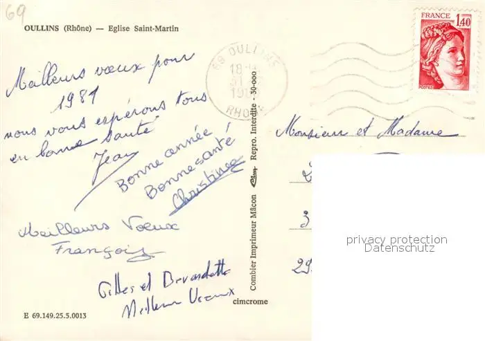 Oullins Eglise Saint Martin Oullins postalisch gelaufen 1981 Erhaltung siehe scans [WerneD78] WernPID7