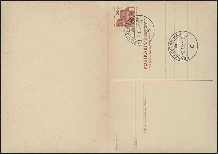 P 67 - Bauten 20/20 Pf rotbraun mit VS-O Frankfurt/Main