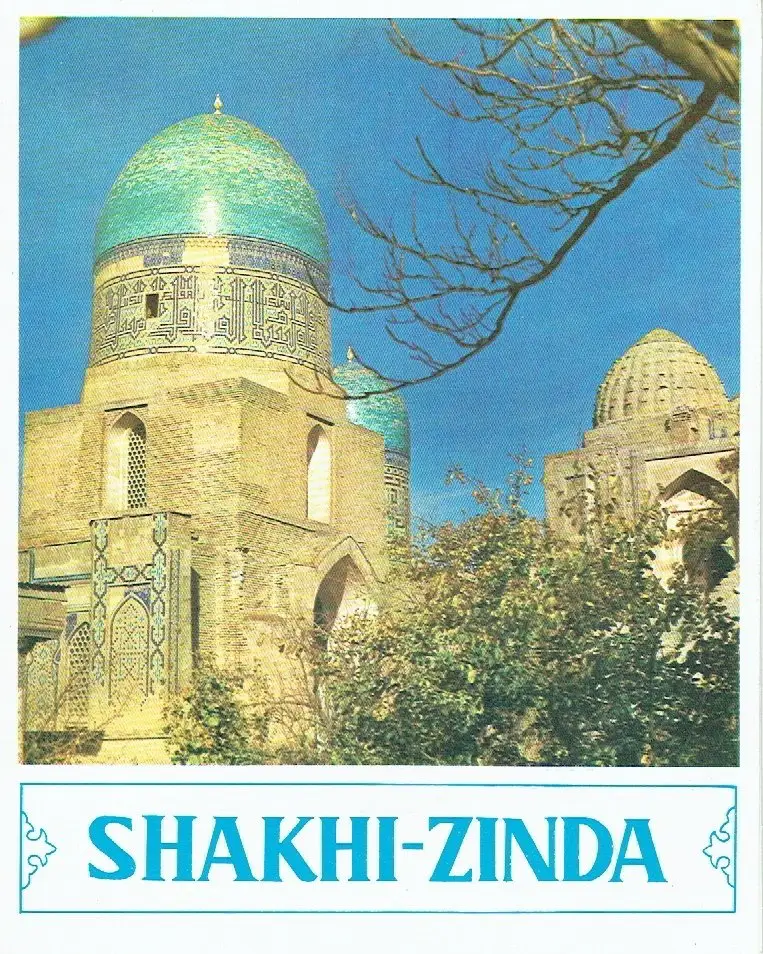 guter bis sehr guter Zustand, geringe Gebrauchs- und Alterungsspuren: Ränder teils mit kleinen Blessuren, Werbe-Prospekt mit Beschreibung und Informationen zum Mausoleen-Komplex (Nekropolen) in Samarkand in Usbekistan in englischer Sprache, Papier, ca. 19,5 x 24,5, 12 Seiten mit 13 Bildern