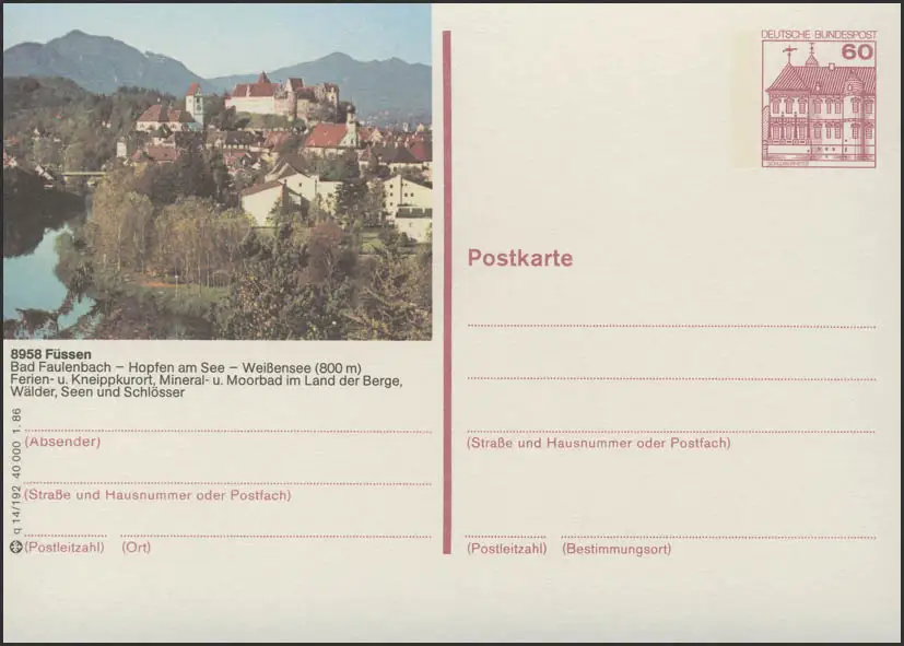P138-q14/192 8958 Füssen, Teilansicht mit Burg **