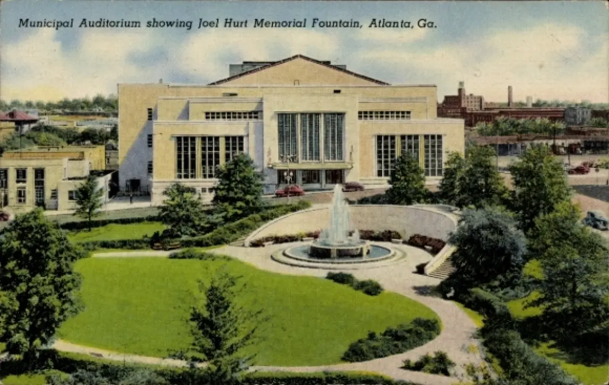PC Atlanta, Georgia, USA, Municipal Auditorium showing Joel Hurt Memorial Fountain