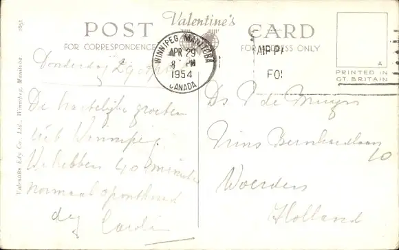 Zustand, siehe Scan, gelaufen, 1954 - ca 9 cm X 14 cm