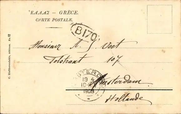 Zustand, siehe Scan, gelaufen, 1908 - ca 14 cm X 9 cm