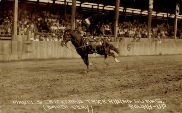 PC Mabel Strickland trick riding Sumas, Round-Up