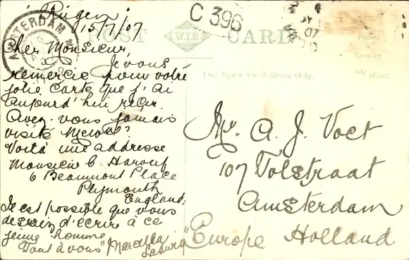 Zustand, siehe Scan, gelaufen, 1907 - ca 14 cm X 9 cm