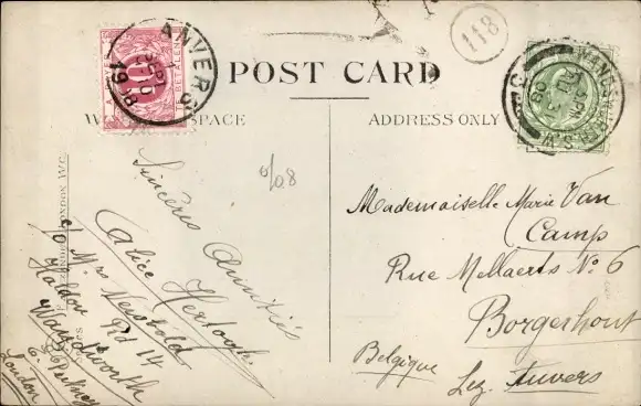 Zustand, siehe Scan, gelaufen, 1908 - ca 14 cm X 9 cm