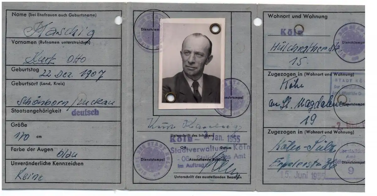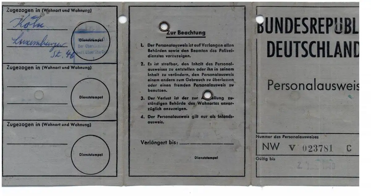 AUSWEIS / PASSPORT / CARTE D'IDENDITE, - Personalausweis Deutschland, Köln 1955
