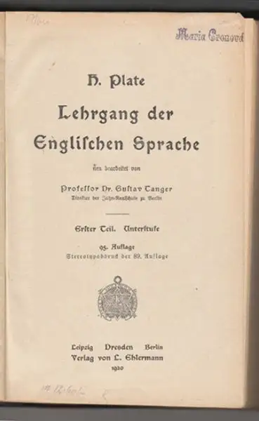 Lpz./Dresden/Bln., Ehlermann 1920. 95. Aufl. Stereotypabdruck d. 89. Aufl. 1. Teil: Unterstufe. 331 S. Ln. d. Zt.