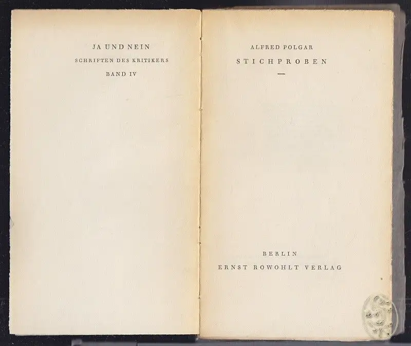 Bln., Rowholt (1927). 8°. 257 (1) S. OBrosch. Deckel gelöst. - (Schriften des Kritikers. Band IV) EA.