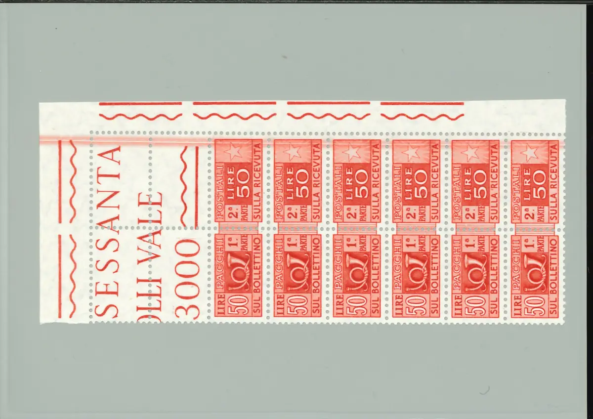 MNH - Vollgummi - POSTPAKETE 50 L. FARBZEILE AUF GRÜNEM STREIFEN. VINYLIC Cod. ITAV_1571