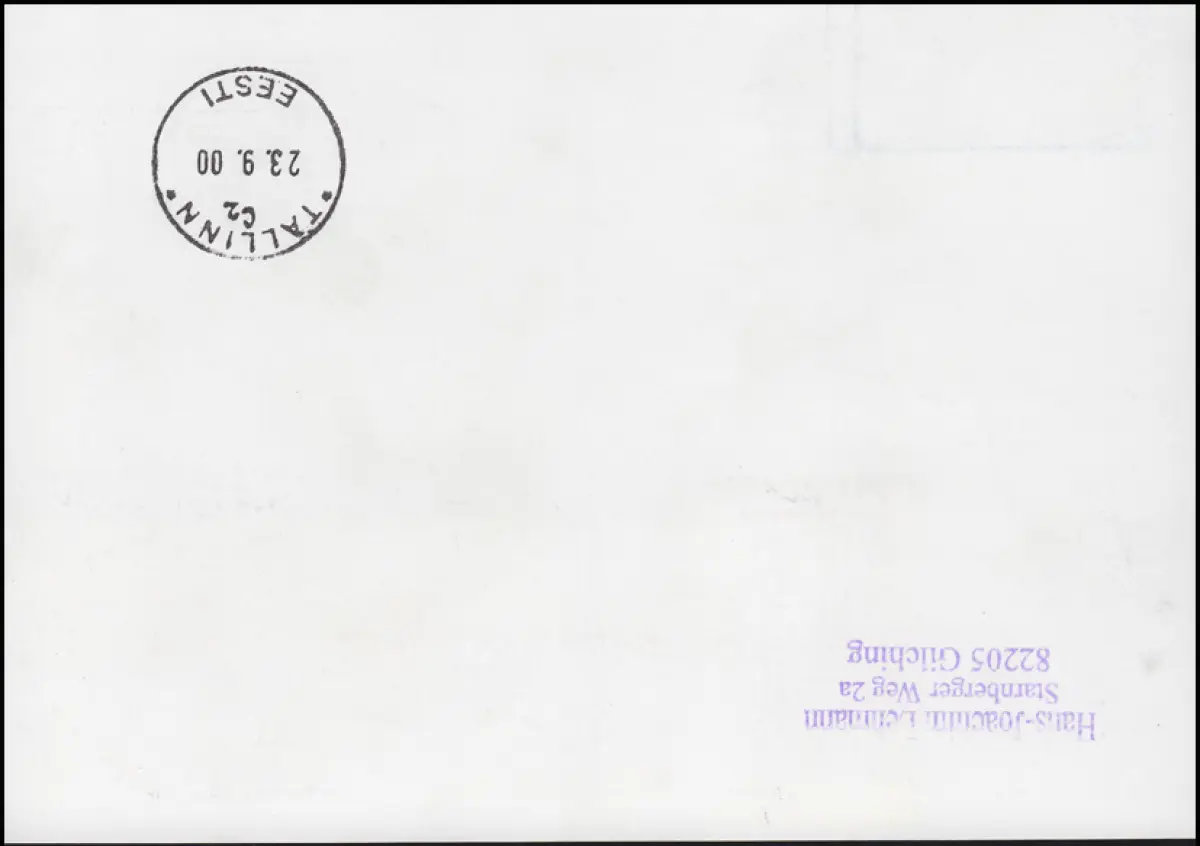 Als Luftpost-Einschreibe-Postkarte mit Zusatzfrankatur der gesuchten ATM-Wertstufen 400, Einlieferungsschein nach Estland, Ankunftsstempel TALLINN 23.9.00.