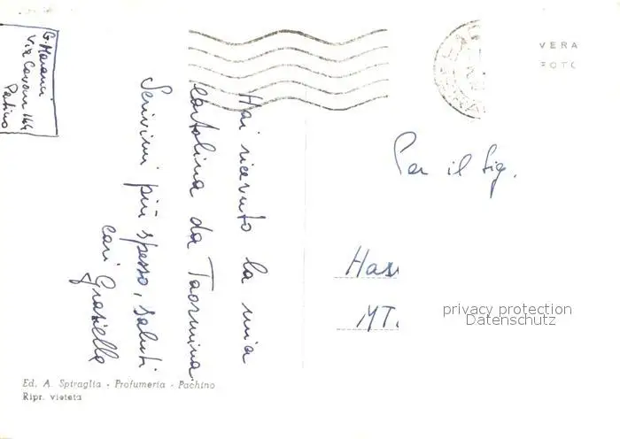 Pachino Castel Bruno Piazza Vittorio Emanuele Pachino postalisch gelaufen 1921-1965 Erhaltung siehe scans [PaolaD17] PaolPID1