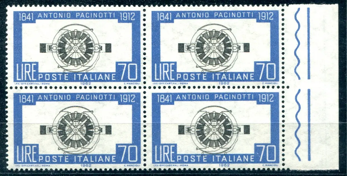 Vollgummi - Pacinotti Lire 70 Nr. 939b Viertel b. von f. mit stark nach unten verschobenem Mitteldruck (mm. 1,5) n. 582/L
