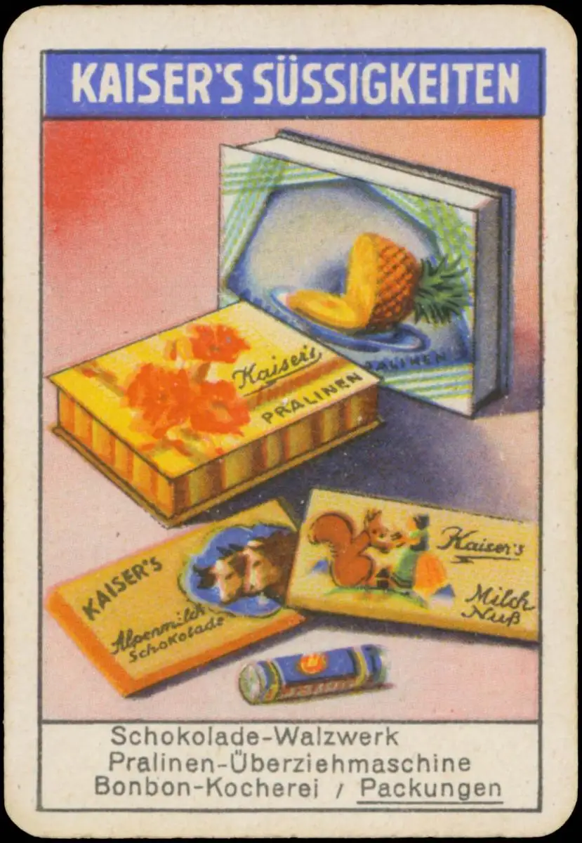 Kaisers Süssigkeiten, Pappkarte vom Quartettspiel, Größe/Zustand: 7x5 , guter Zustand, Original alte Reklamemarke die seinerzeit für die Werbung benutzt wurde