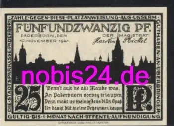 Paderborn Notgeld 25 Pfennige 1921