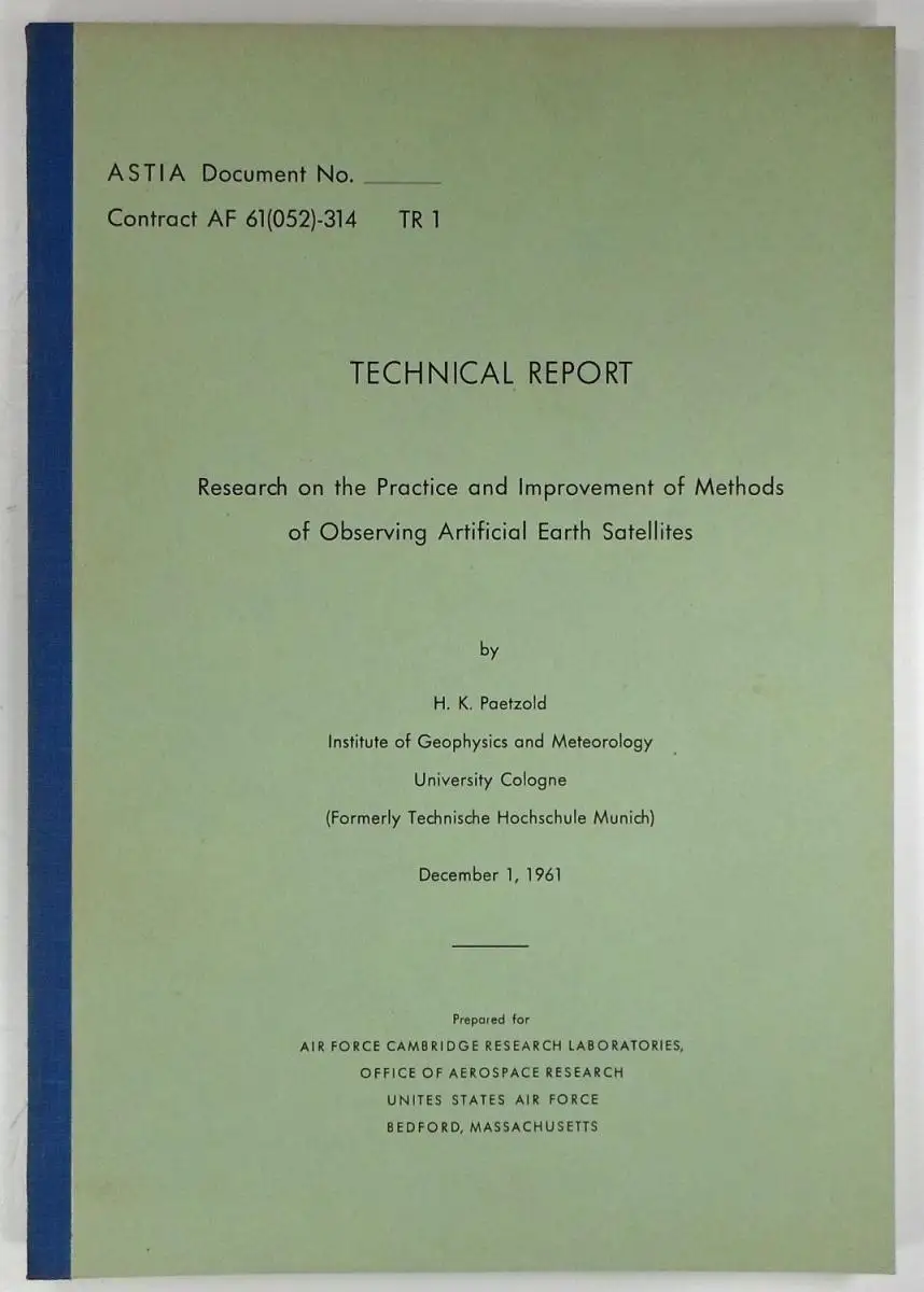 Paetzold, H. K: Technical Report. Research on the Practice and Improvement of Methods of Observing Artificial Earth Satellites.
