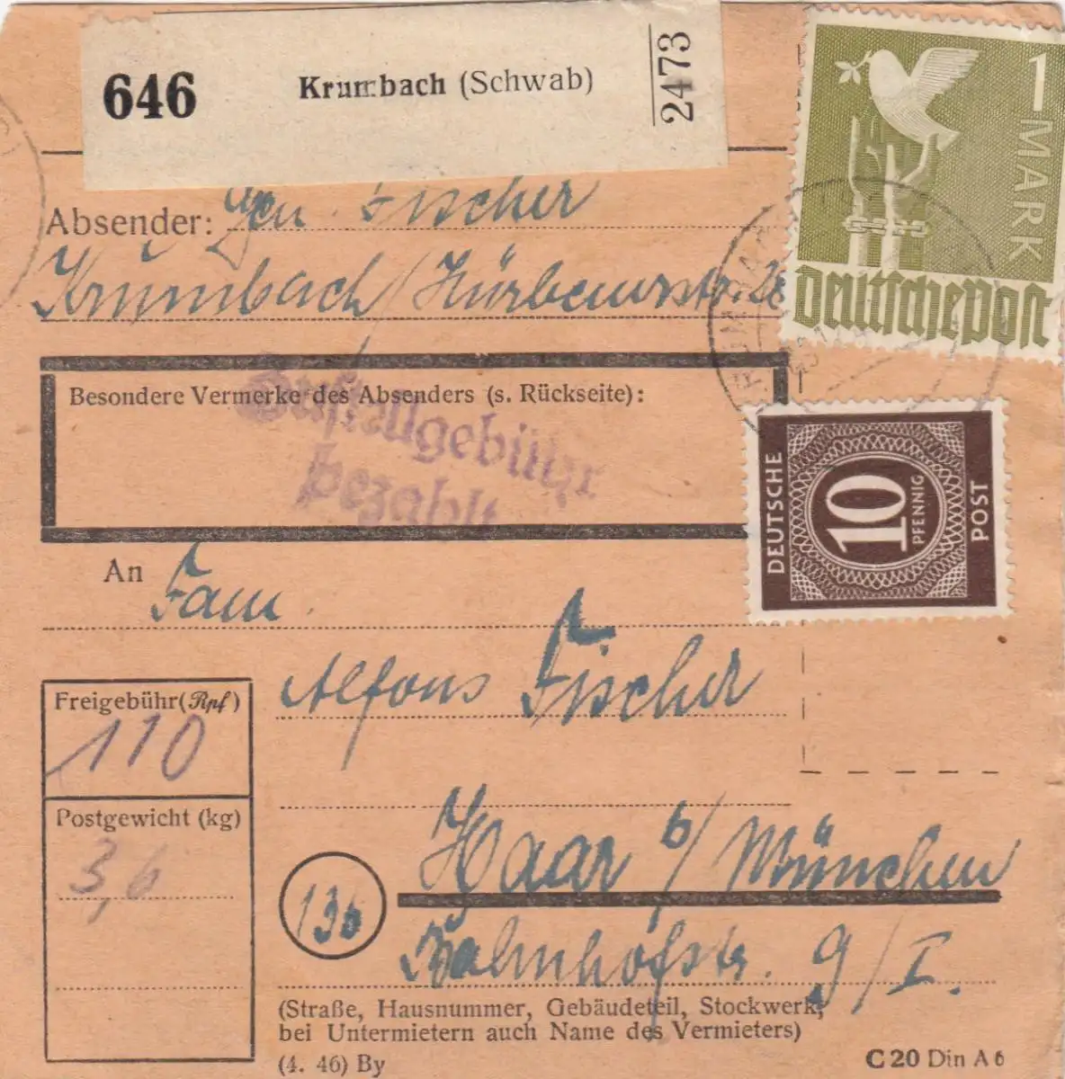 Brief/Karte oder Marken nur im Scan leicht beschnitten. Marken sind vollständig,