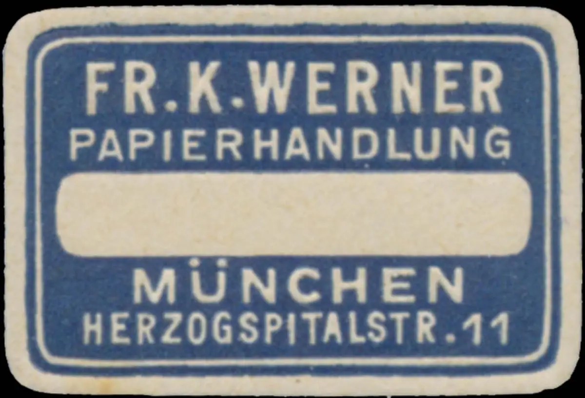 Etikett, Herzogspitalstraße 11, Größe/Zustand: 2x3 , guter Zustand, Original alte Reklamemarke die seinerzeit für die Werbung benutzt wurde