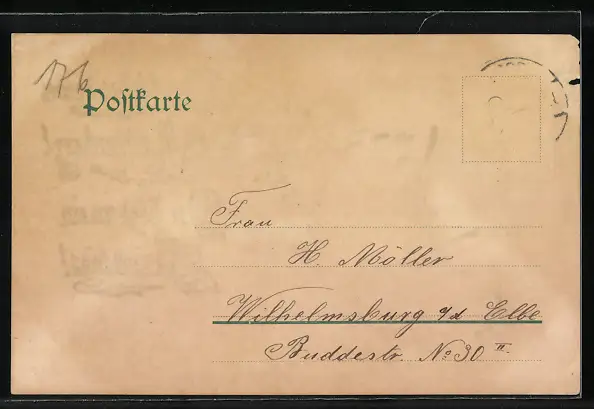 alte Ansichtskarte, gelaufen, Briefmarke entfernt, guter Zustand