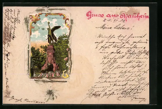 Papierkunst-AK Mannheim, Krieger-Denkmal