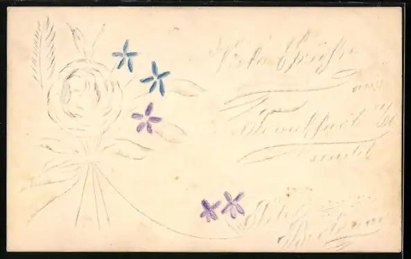 Papierkunst-AK Rose mit gezeichneten Blüten