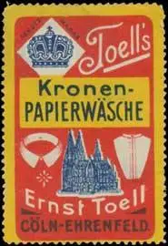 Toells Kronen-Papierwäsche, Cöln-Ehrenfeld, Größe/Zustand: 5x4 , beschädigt, Original alte Reklamemarke die seinerzeit für die Werbung benutzt wurde