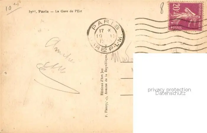 Paris Gare de l'Est Bahnhof Paris postalisch gelaufen 1921-1965 Erhaltung siehe scans [FriedD77] Frierer