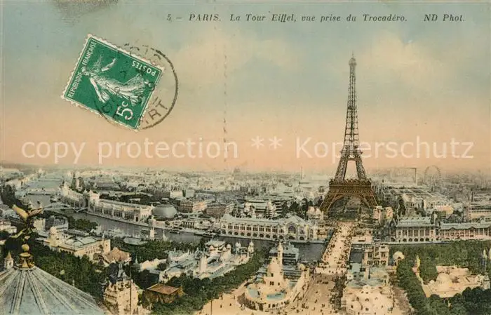 Paris La Tour Eiffel vue prise du Trocadéro Paris postalisch gelaufen bis 1920 Erhaltung siehe scans [FriedD77] Frierer