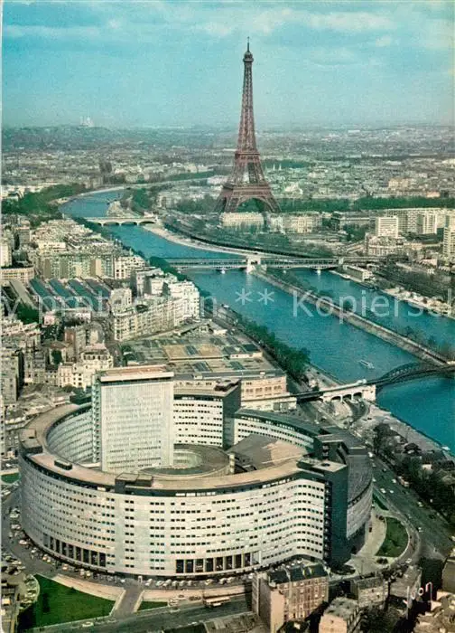 Paris Maison de l O.R.T.F. Architecte Henri Bernard la Seine et la Tour Eiffel vue aerienne Paris