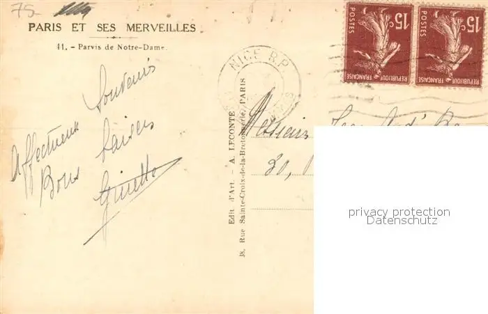 Paris Parvis de Notre Dame Paris postalisch gelaufen 1921-1965 Erhaltung siehe scans [LiesaD40] LiesID40