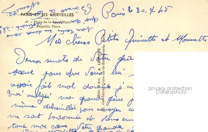 Paris Place de la République Monument Paris postalisch nicht gelaufen 1945 Erhaltung siehe scans [FriedD77] Frierer